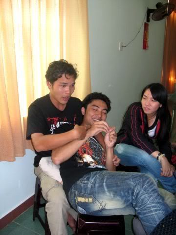 Hắn: Lúc nãy thấy mày đi ngang qua khúc cua kia, anh đã định đâm chú mày rồi. Nhưng nghĩ lại thấy chú mày còn trẻ nên anh mới hỏi lại. Thế chú mày có biết dao là gì không? ( Nó:dạ em biết)